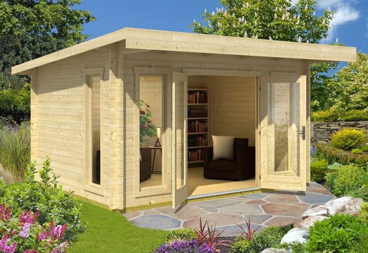Cet abri dispose de parois constituées de madriers de 44 mm d’épaisseur fabriqués en épicéa massif. Ces derniers devront être assemblés par vos soins, et supporteront dès lors un toit plat dont la légère inclinaison permet l’écoulement de l’eau en cas de pluie. Le revêtement en feutre bitumé se chargera quant à lui d’assurer la bonne étanchéité de la toiture.