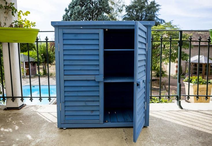 Armoire de jardin en bois lasuré bleu - 87 x 46 x 95 cm