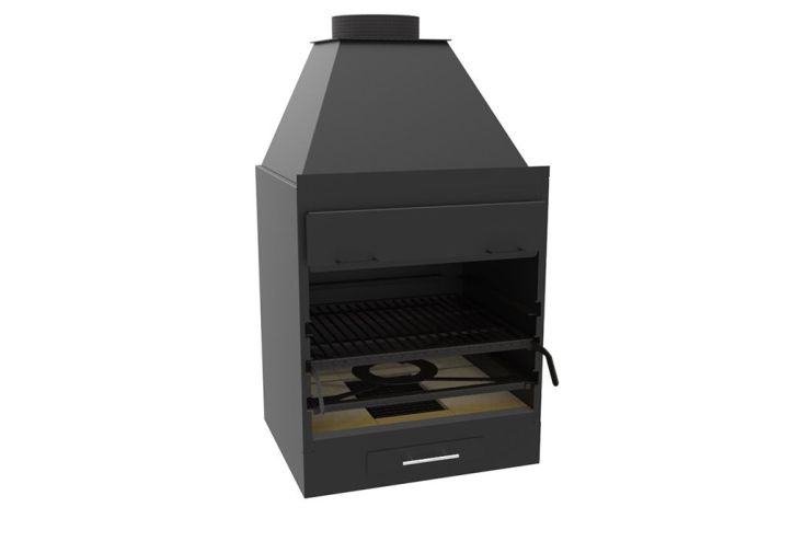 Ce barbecue à charbon et bois est fabriqué en acier au carbone de 4 mm d’épaisseur. Il repose sur une base faite de briques réfractaires, des briques conçues pour résister à de très hautes températures tout en retenant et diffusant lentement la chaleur. Sa grille en fonte de 62,5 x 55 cm pourra être réglée en hauteur selon quatre positions.