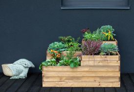 Ce carré potager à 3 étages en bois signé Ekju possède des dimensions de 120 x 120 x 40 cm et est traité en autoclave brun classe III. Il résiste donc aux insectes et moisissures et sa teinte permet d’éviter les taches vertes souvent liées à ce traitement.