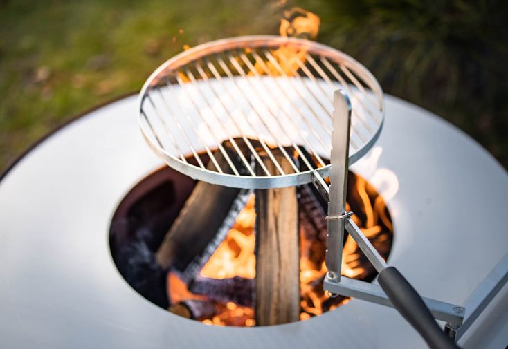 Cette grille de cuisson en inox est le complément idéal pour votre brasero plancha Boule de chez Feu du Jardin. Elle mesure 38 cm de diamètre et est accompagnée d’un support pivotant articulé grâce auquel vous pourrez ajuster la hauteur de cuisson.