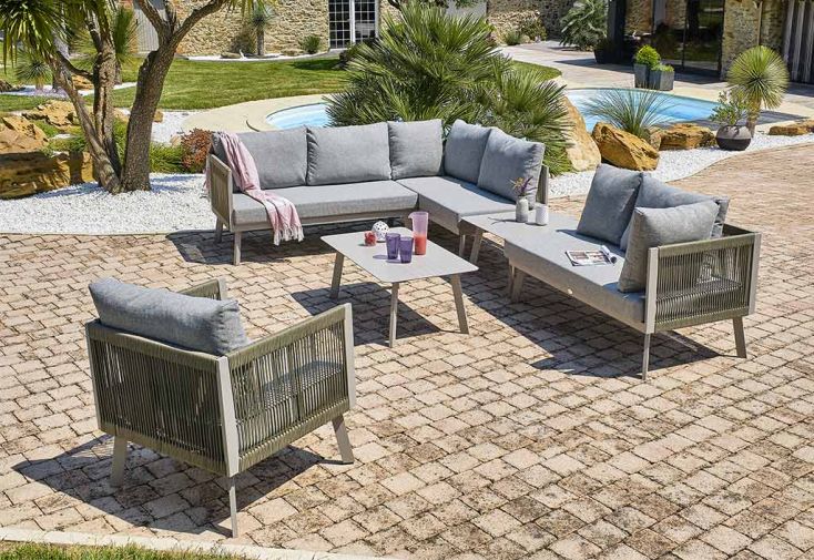 Salon de jardin d’angle en aluminium gris 7 places - Manosque